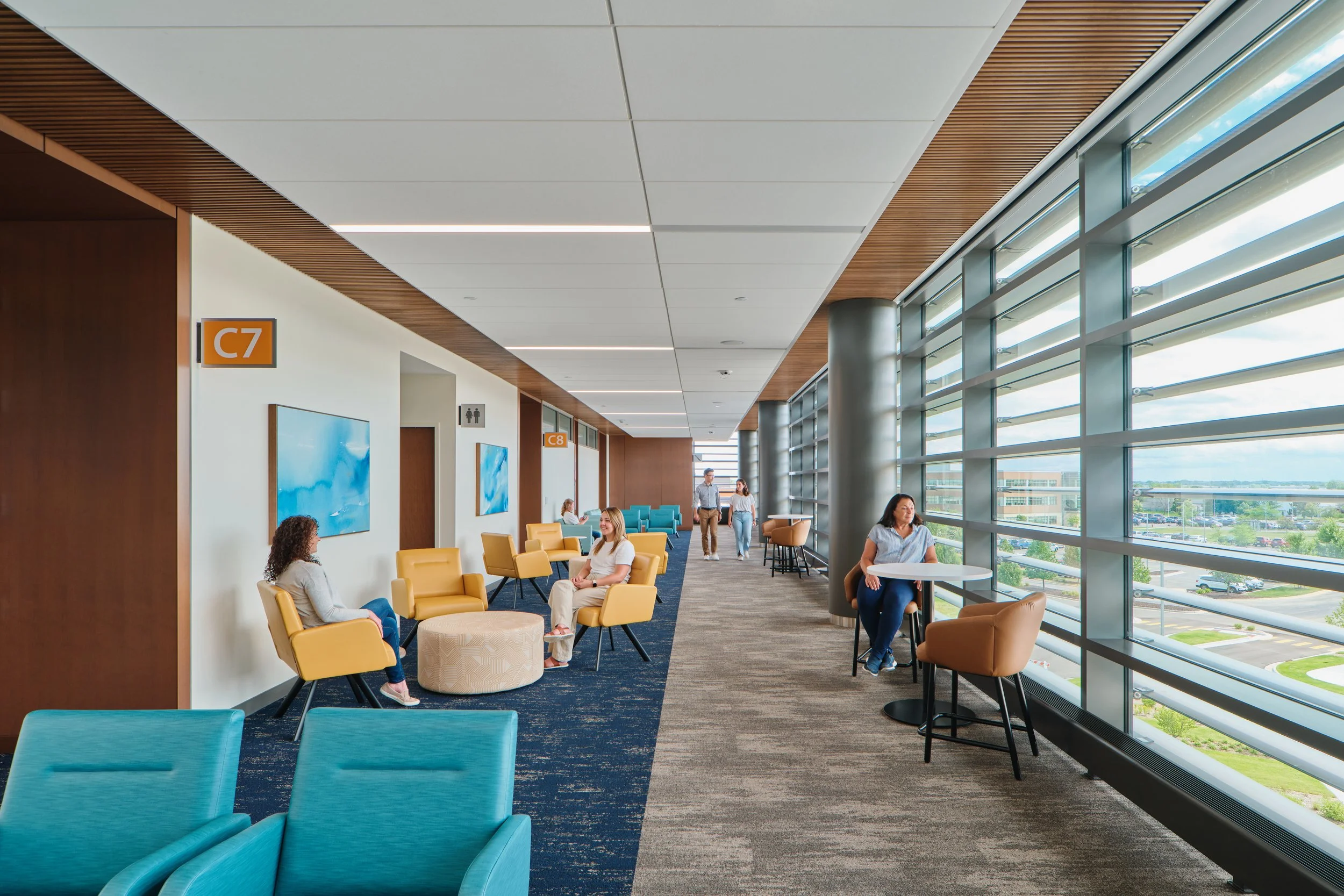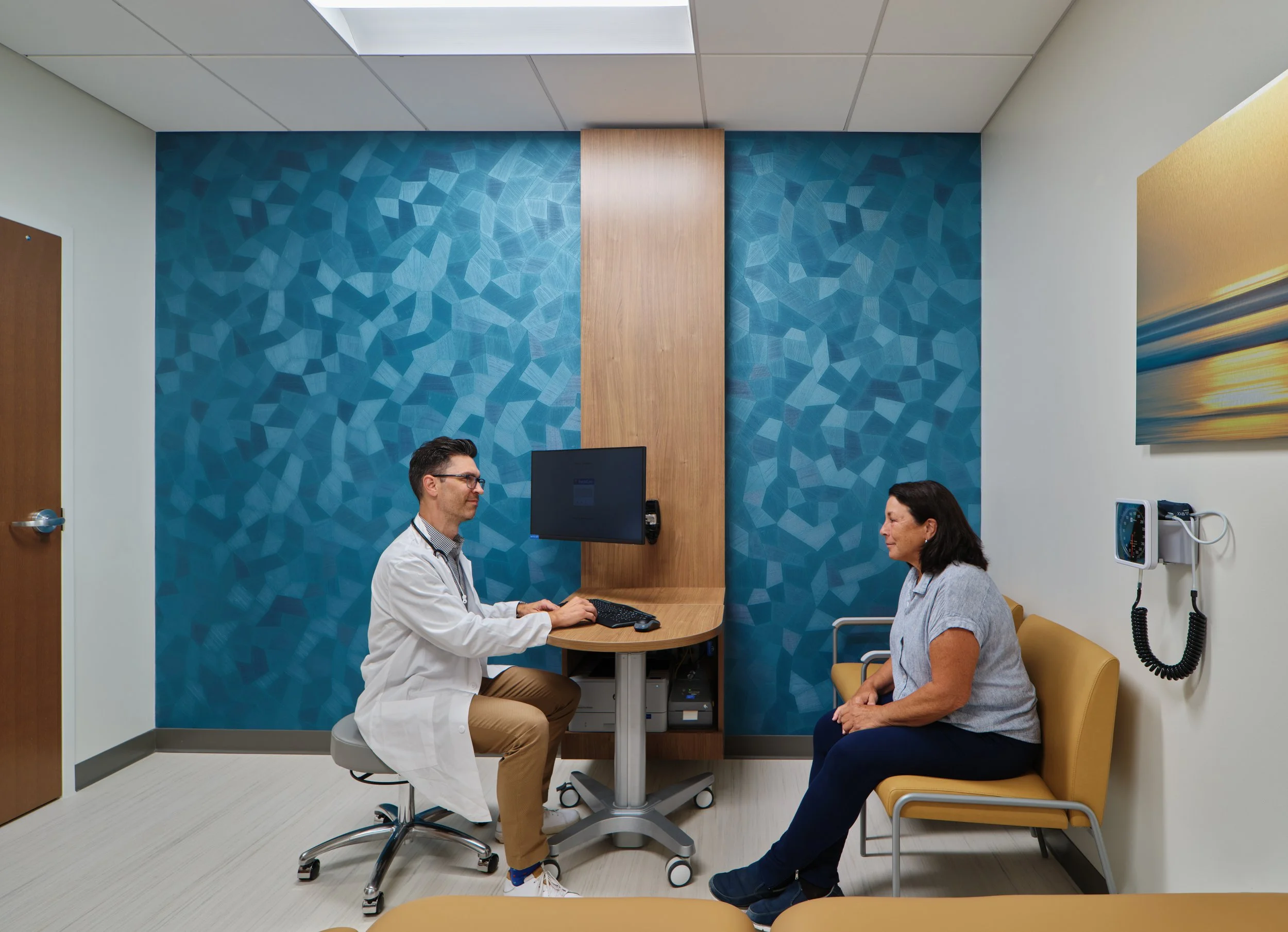 Quickly moving into design, the interior architecture of the combined Ambulatory Surgery Center, 24-bed Hospital, and Clinic/Rehab building, developed into a series of grand & intimate spaces, with bold colors and timeless materials, tailored to create a cohesive hotel-like experience, for patients, visitors & staff.
